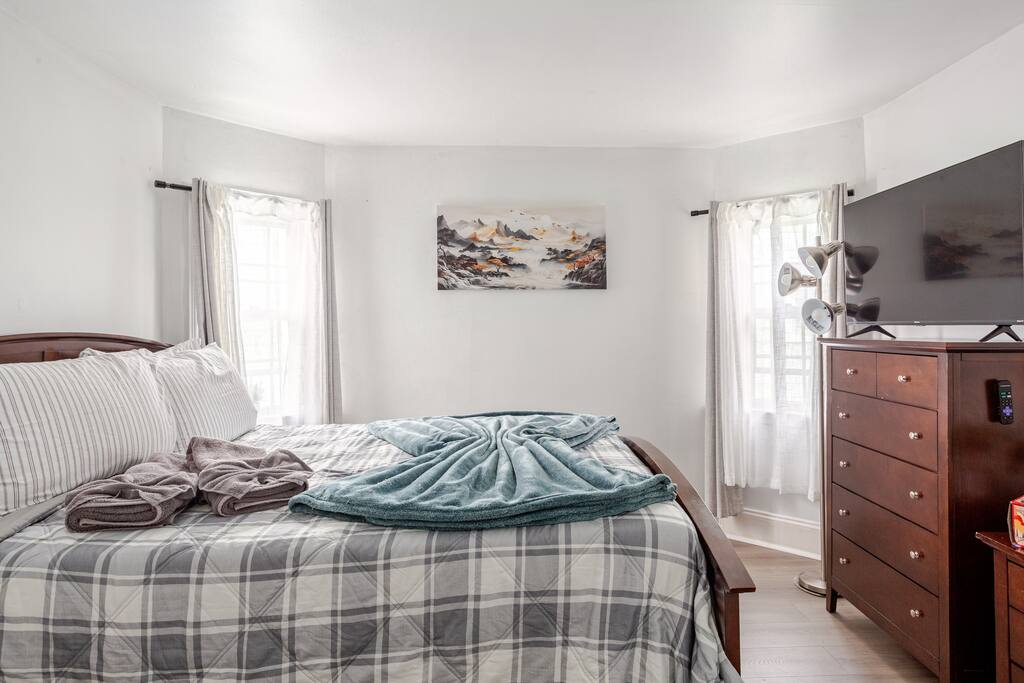 This spacious two-story home offers comfort for up to eight guests. The second floor includes three bedrooms and one full bath: a master with a king bed and two rooms with queen beds. The first floor features an open living room with a sleeper sofa, dining area, and fully equipped kitchen—perfect for family meals or relaxing evenings. Let your host know if you need anything to make your stay even more comfortable.