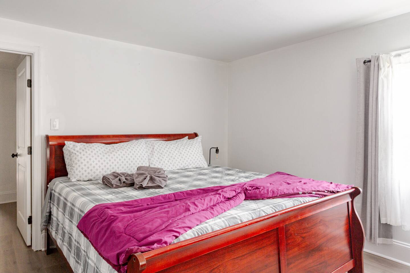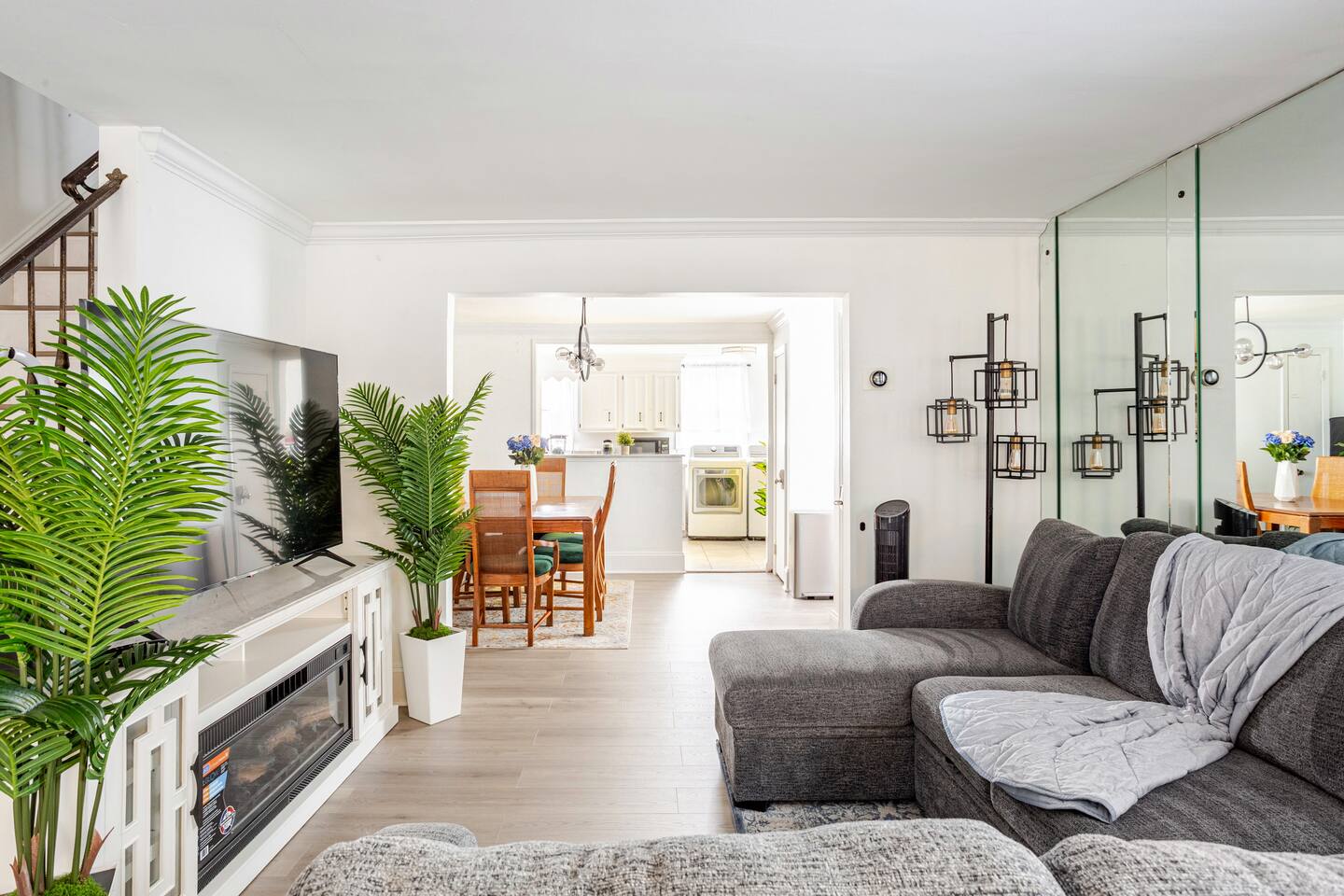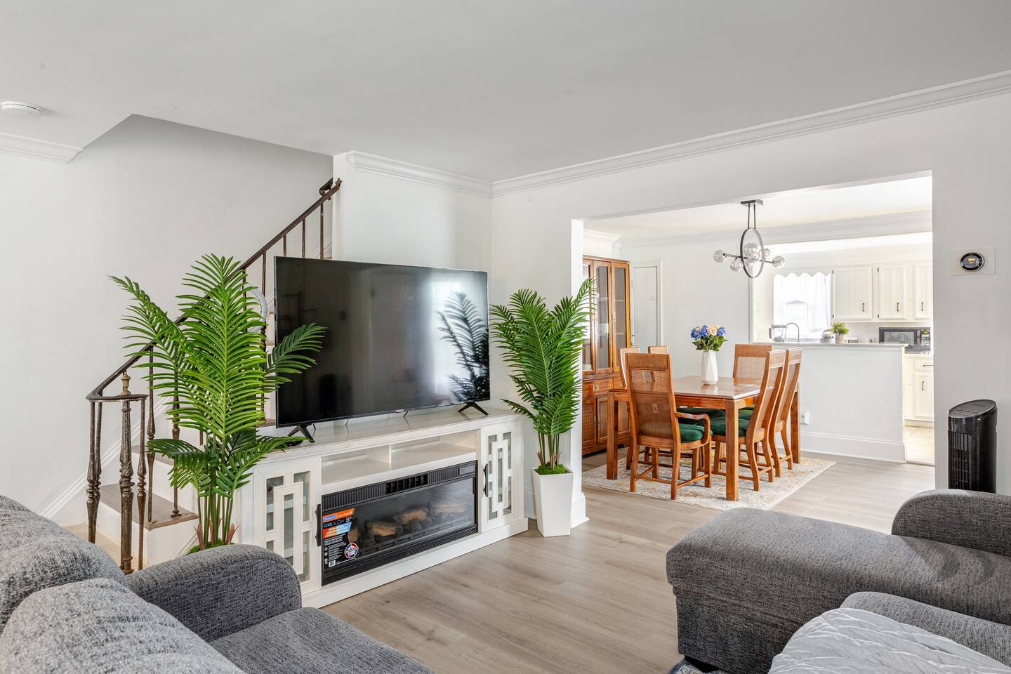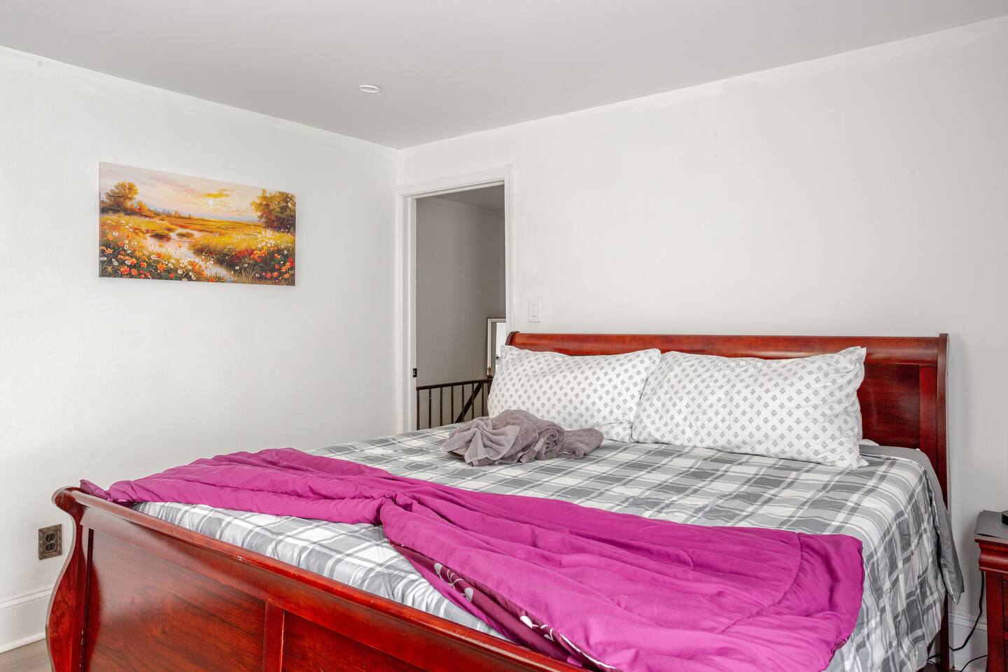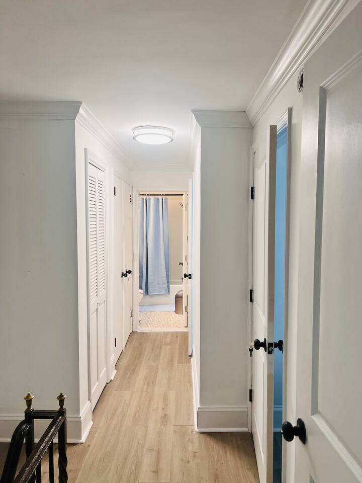 This spacious two-story home offers comfort for up to eight guests. The second floor includes three bedrooms and one full bath: a master with a king bed and two rooms with queen beds. The first floor features an open living room with a sleeper sofa, dining area, and fully equipped kitchen—perfect for family meals or relaxing evenings. Let your host know if you need anything to make your stay even more comfortable.
